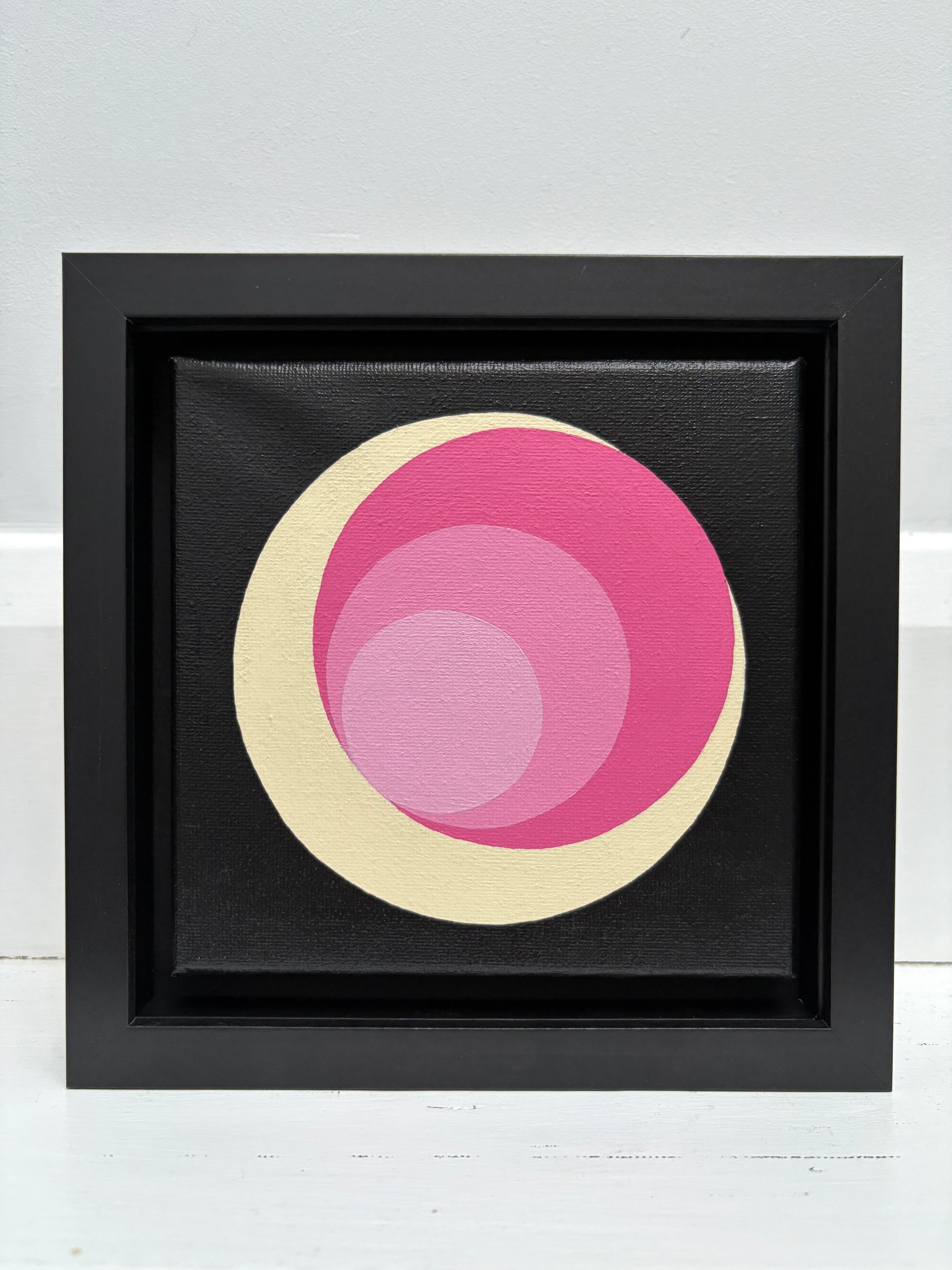 Small, geometric pink original artwork. Would look great on a shelf or mantelpiece or as part of a gallery wall. 15cm canvas recessed in 20cm frame.